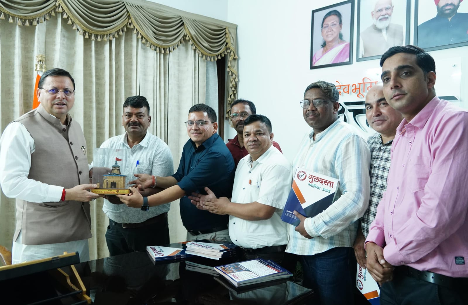 देहरादून। मुख्यमंत्री पुष्कर सिंह धामी ने मुख्यमंत्री आवास में हिंदी पत्रकारिता दिवस के अवसर पर उत्तरांचल प्रेस क्लब द्वारा प्रकाशित स्मारिका गुलदस्ता का विमोचन किया। उत्तरांचल प्रेस क्लब के सदस्यों तथा सभी पत्रकारों को हिंदी पत्रकारिता दिवस की शुभकामनाएं देते हुए मुख्यमंत्री पुष्कर सिंह धामी ने कहा कि जनतांत्रिक व्यवस्था में पत्रकारिता को चतुर्थ स्तंभ के रूप में गौरवशाली स्थान प्राप्त है। पत्रकारिता वस्तुतः सत्ता और जनता के बीच एक सशक्त माध्यम की भूमिका निभाते हुए जनता की आवाज को सत्ता तक और सत्ता की योजनाओं की जानकारी जनता तक पहुंचाने के अत्यंत महत्वपूर्ण उत्तरदायित्व का सुचारु निर्वहन करती है। इसी से देश एवं प्रदेश के सर्वांगीण विकास का मार्ग प्रशस्त होता है तथा जन मानस में राष्ट्र निर्माण और जन कल्याण की भावना प्रबल होती है। मीडिया लोकतंत्र का महत्वपूर्ण अंग है और मीडिया की राज्य के विकास में अहम भूमिका है। राज्य सरकार द्वारा भी पत्रकारों एवं उनके आश्रितों के कल्याण के लिए महत्वपूर्ण योजनाएं आरंभ की गई है। इस अवसर पर वरिष्ठ पत्रकार भूपेंद्र सिंह कंडारी, सुरेंद्र सिंह डसीला, संदीप बडोला, मनीष डंगवाल, रमन जायसवाल, किशोर रावत सहित अन्य पत्रकार मौजूद रहे।