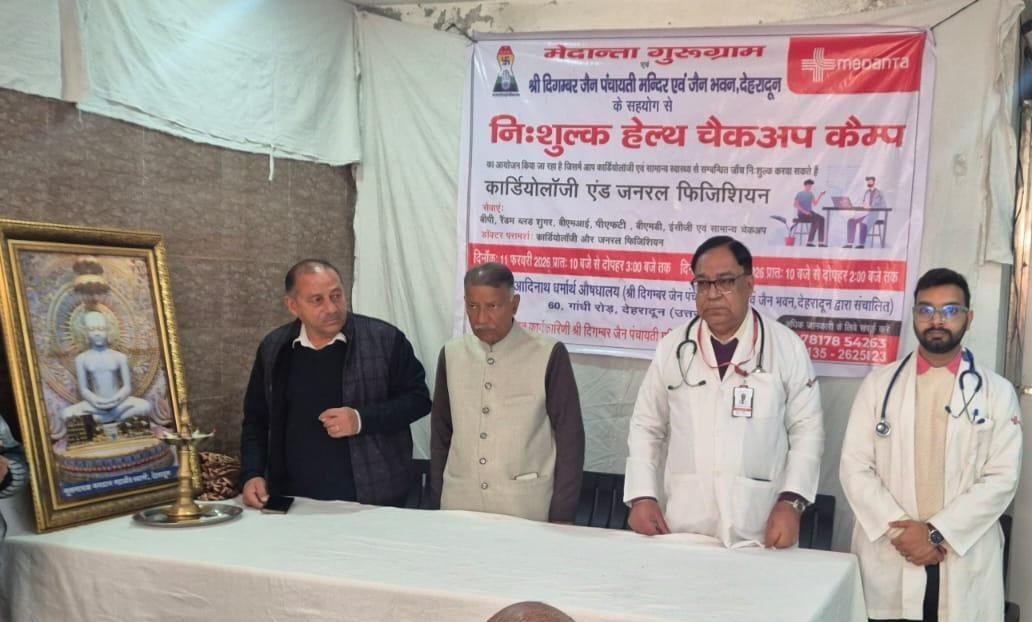 देहरादून | श्री दिगम्बर जैन पंचायती मन्दिर एवं जैन भवन, देहरादून एवं मेदान्ता गुरूग्राम के सहयोग से निःशुल्क हेल्थ चैकअप कैम्प का आयोजन 60 गांधी रोड स्थित जैन धर्मशाला में किया गया कार्यक्रम की शुरुआत दीप प्रज्वलंकर सभी डॉक्टर का सम्मान करने के पश्चात कैंप प्रारंभ किया गया जिसमें कार्डियोलॉजी एवं सामान्य स्वास्थ्य से सम्बन्धित जाँच निःशुल्क की गई ।जिसमें कार्डियोलॉजी एंड जनरल फिजिशियन में डॉक्टर परामर्श डॉक्टर एस के तनेजा (कार्डियोलॉजिस्ट )डॉ मयंक सिंह (फिजिशियन )अमित भगत, राजेंद्र चमोली ( मैनेजर,मार्केटिंग)टीना, आरती (नर्सिंग) विशाल (बीएमडी टेक्नीशियन) सचिन (पीएफटी टेक्नीशियन) ने अपनी निशुल्क सेवाएं दी। कैंप में बीपी, रैंडम ब्लड शुगर, बीएमआई, पीएफटी, बीएमडी, ईसीजी एवं सामान्य चेकअप किए गए, कार्यक्रम की जानकारी देते हुए मीडिया कोऑर्डिनेटर मधु जैन ने बताया कि यह कैंप 12 फरवरी को 10 बजे से 2 बजे तक संचालित रहेगा जिसमें सभी अपने निशुल्क चेकअप और परामर्श ले सकते हैंइस अवसर पर प्रधान सुनील जैन ने कहा कि निशुल्क स्वास्थ्य कैंप लगाने का हमारा एक ही उद्देश्य है आज की व्यस्त दिनचर्या में जहां व्यक्ति अपने दैनिक क्रियाकलापों में इतना बिजी है कि वह अपनी तरफ ज्यादा रहा ध्यान नहीं दे पाता है और कई कारण ऐसे भी होते हैं जहां पर कुछ जांच महंगी होने के कारण अनदेखा भी करता है इसी को मद्देनज़र रखते हुए जन-जन के स्वास्थ्य लाभ पहुंचे यह कैंप निशुल्क का आयोजित किया गया ताकि हर किसी को इसका लाभ पहुंच सके। साथ ही हमारे महावीर भगवान का यह संदेश भी है कि जियो और जीने दो तो इसमें अपना स्वास्थ्य का ख्याल रखते हुए हम दूसरे के स्वास्थ्य का भी चिंता करें यही जियो और जीने दो की सार्थकता होगी। शिविर में 70 लोगों की निशुल्क जांच की गई, इस अवसर पर प्रधान सुनील जैन (बस वाले) राजेश जैन महामंत्री जैन समाज राजीव जैन कोषाध्यक्ष प्रवीण जैन उप प्रधान विनोद जैन,अनुज जैन,पंकज जैन, मुनेन्द्र जैन, धर्मेन्द्र जैन विशद जैन सतीश जैन संजय, जिनेन्द्र जैन आदि मौजूद रहे।
