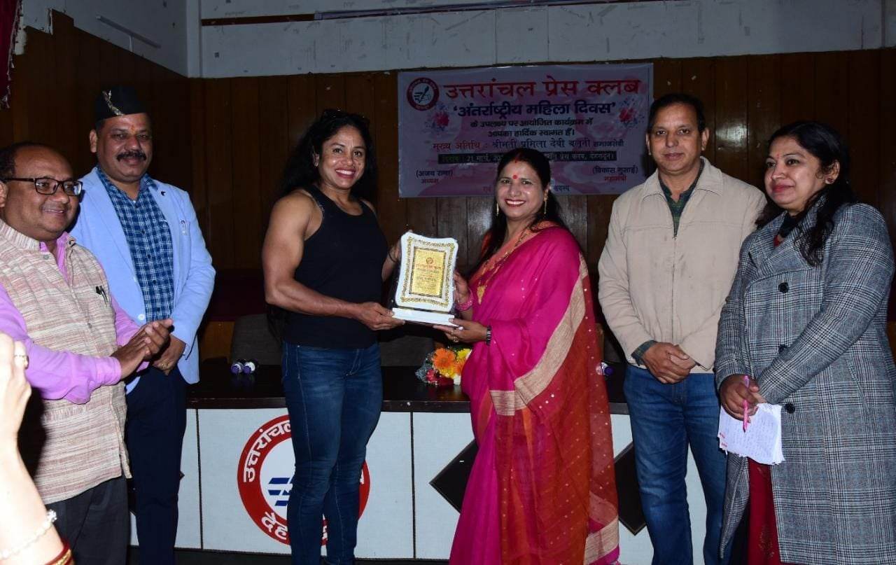 कार्यक्रम के दौरान प्रेस क्लब के पूर्व अध्यक्ष जितेन्द्र अथंवाल ने उपस्थित महिलाओं का उत्साहवर्धन किया। कहा कि महिलाओं को हर क्षेत्र में आगे आना होगा। कार्यक्रम के दौरान बाॅडी बिल्डर प्रतिभा थपलियाल, स्वास्थ्य क्षेत्र में डाॅ मेघना असवाल, शिक्षा के क्षेत्र डाॅ स्वाति आंनद, पत्रकारिता के क्षेत्र में ज्योत्सना, उद्यमिता के क्षेत्र में पूजा तोमर, समाजसेवा के क्षेत्र मेें रमनप्रीत कौर, स्वंय सहायता समुह के क्षेत्र में पूनम बुटोला शर्मा व प्रेमलता नंदन को सम्मानित किया गया। कार्यक्रम की अध्यक्षता पे्रस क्लब अध्यक्ष अजय राणा व संचालन संयुक्त मंत्री मीना नेगी ने किया। क्लब महामंत्री विकास गुसाईं ने सभी अतिथियों का आभार व्यक्त किया। इस अवसर पर वरिष्ठ उपाध्यक्ष रश्मि खत्री, कार्यकारिणी सदस्य लक्ष्मी बिष्ट, क्लब सदस्य सुलोचना पयाल, माधुरी, प्रभा वर्मा, नलिनी गोसाईं, दीपशिखा रावत वर्मा, प्रिंयका रावत के साथ ही क्लब के कनिष्ठ उपाध्यक्ष दरवान सिंह, कोषाध्यक्ष मनीष चंद्र भट्ट, कार्यकारिणी सदस्य मंगेश कुमार, विनोद पुंडीर, राम अनुज सदस्य किशोर रावत, संजय नेगी आदि मौजूद रहें।